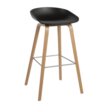 Sgabello About a Stool AAS 32 seduta nera, Base rovere.